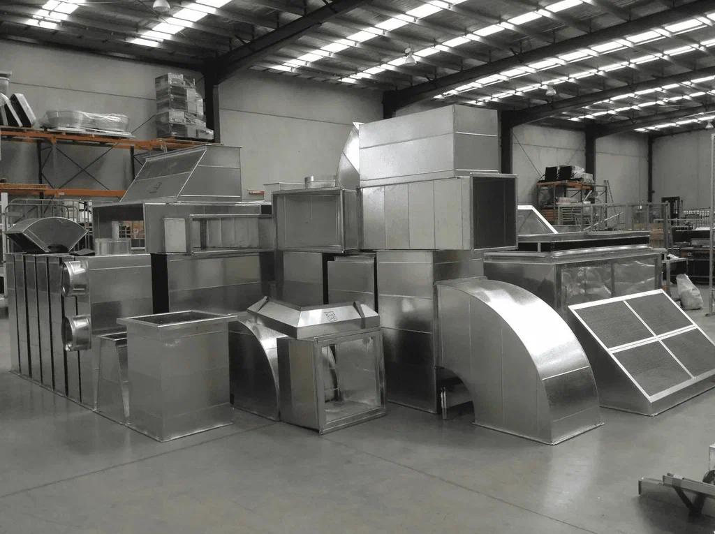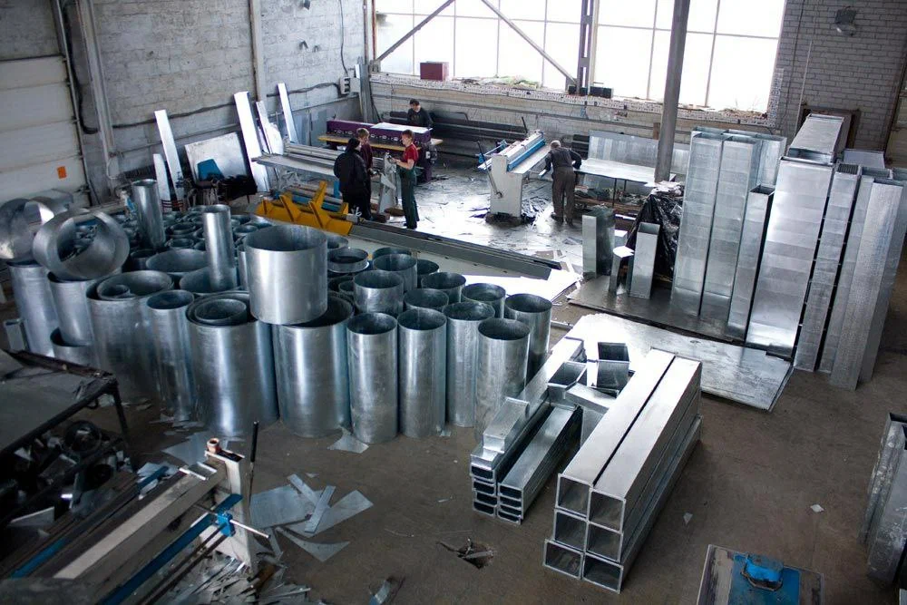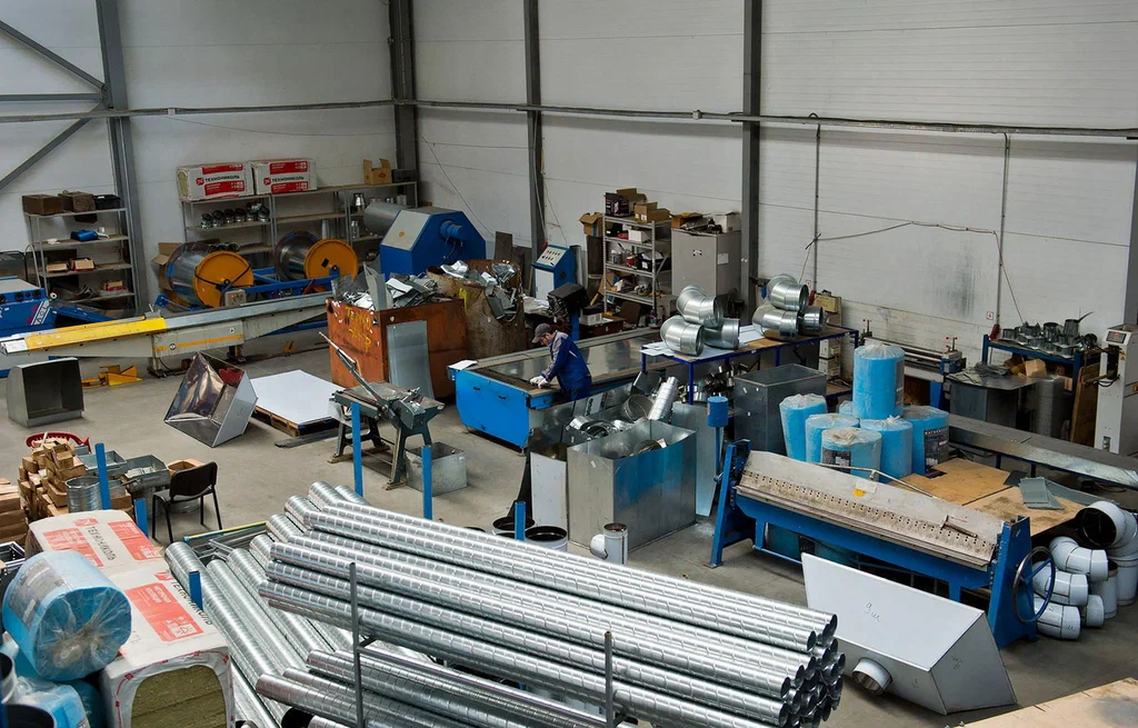 В нашем цехе стоят станки для раскроя, гибки и сборки воздуховодов. Режем металл, гнём борта, собираем изделия, маркируем под объект.